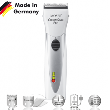 Професійна високоякісна машинка для стрижки волосся Moser Li-ION ChromStyle Pro 1871-0072 зібрана в Німеччині і має довговічним і високопродуктивним літій-іонним акумулятором без "ефекту пам'яті". Завдяки новому акумулятора Ви можете в будь-який момент поставити або зняти машину з зарядки, або працювати нею від мережі, коли буде потрібно, а літій-іонний акумулятор при цьому не буде втрачати обсяг заряду. Комбіноване харчування від мережі і від акумулятора однозначно додасть зручності в процесі роботи. Час роботи від акумулятора 90 хвилин, а час заряду всього 60 хвилин. Професійний швидкознімний ножовий блок з легованої сталі з механізмом регулювання довжини зрізу від 0,7 до 3 мм. Потужний і чистий зріз завдяки високоточної технології шліфування ножів "Made in Germany". Леза виконані з якісних матеріалів, що забезпечить комфорт під час стрижки. Низький рівень вібрації і шуму у Moser 1871-0072 - це комфорт для Вас і Вашого клієнта. Машинка зручна, легка і надійна в процесі експлуатації.
