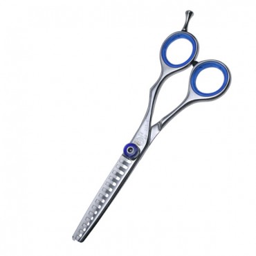 Ножиці з нижнім філірувальним полотном (14 зубців) зі зміщеними кільцями. Оснащені змінними кільцями та знімним упором для пальця. Це забезпечує зручніше використання ножиць. Леза з'єднані новим гвинтом, який дозволяє найбільш точно контролювати силу натягу полотен і стригти волосся будь-якої товщини і структури. Полотно з високоякісної надтвердої сталі з'єднане з ручкою за допомогою мікрозварювання.