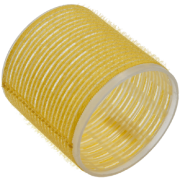 Бігуди довжиною 66 мм. Зовнішній шар з ворсистой тканини «липучка» дає можливість дуже швидко зміцнити їх на волосах. Бігуди доводяться до самого корня не оставляя слідів від резинок або зажимов. Колір: жовтий. В упаковці 6 штук.