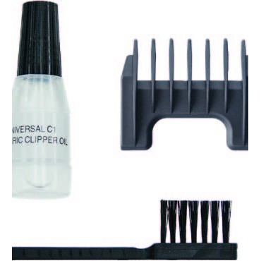 В комплекте к машинке: насадка-гребень на 1,5 мм, щеточка для очистки, масло.