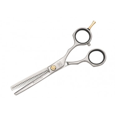 Профессиональные филировочные ножницы Katachi. Ножницы целиком выполнены из стали, что повышает его износостйкость и долговечность. Винтовая система с пластиковой втулкой и сменным резиновым кольцом делает инструмент эргономичным и удобным.